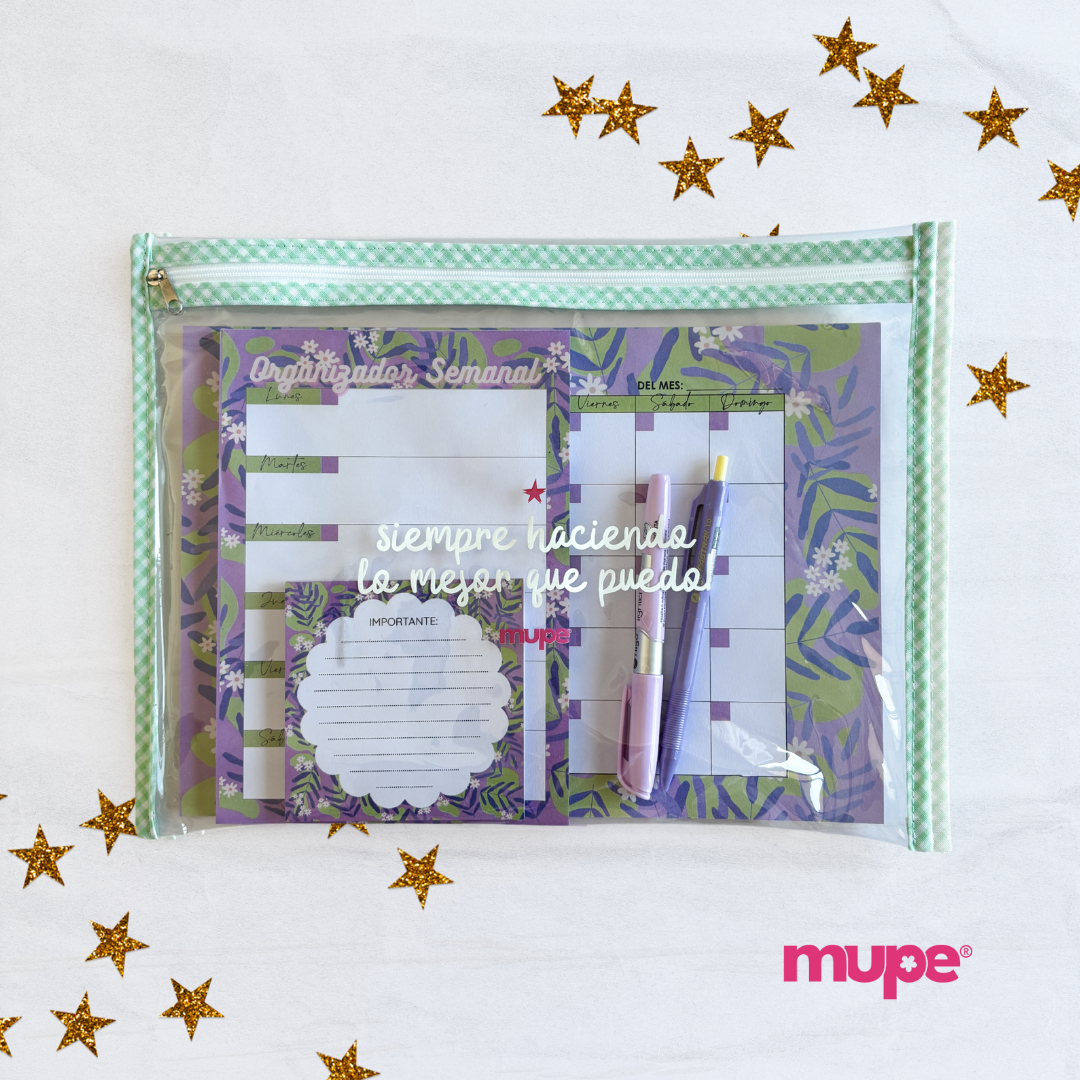 – Sobre A4 transparente con frase – borde verde agua cuadrillé.-
