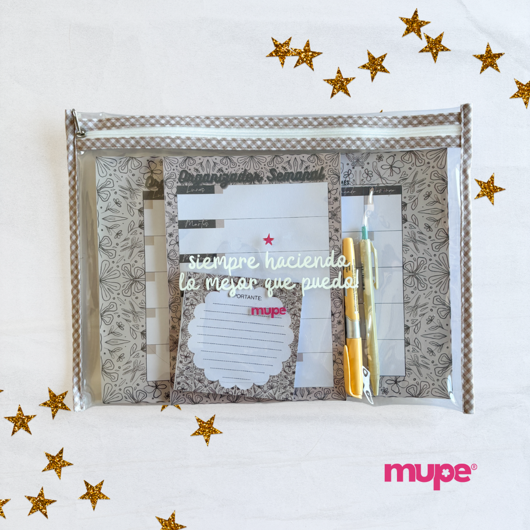 – Sobre A4 transparente con frase – borde beige cuadrillé.-